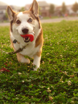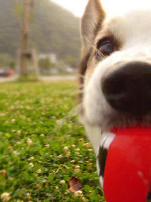 18日夕方の散歩は新しいボールでボール遊びをしました。