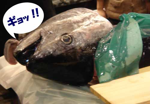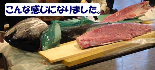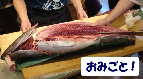 そして、順番待ちのお客さんがウェイティングスペースにたまる頃、鮪の解体の実演が始まりました。