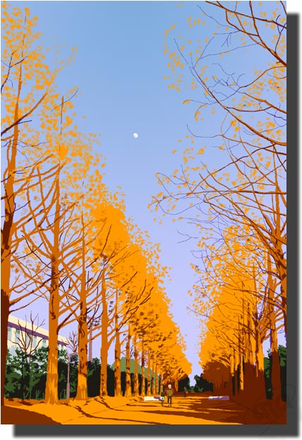 平塚総合公園です。大原高校に添った並木道を描いてみました。