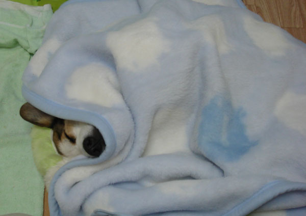 寒いかなと思い毛布を頭まですっぽりかけてみました。
