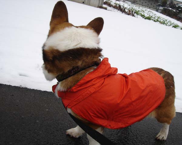 どんどん降っていたけど仕方ないので、モモタの散歩に行きました。