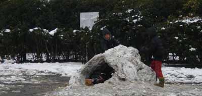人間の子供達も素晴らしい!寒さ知らずだね。みんな雪を満喫している…雪合戦をおもいっきりしている子供達がいたり、大きな雪だるま作っていたり…