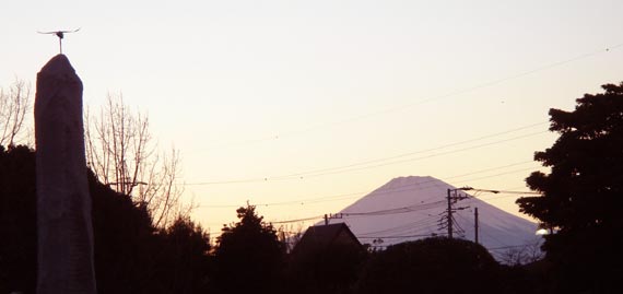 この日は、夕方の散歩で通りました。夕日と月が同時に存在する時間でした。