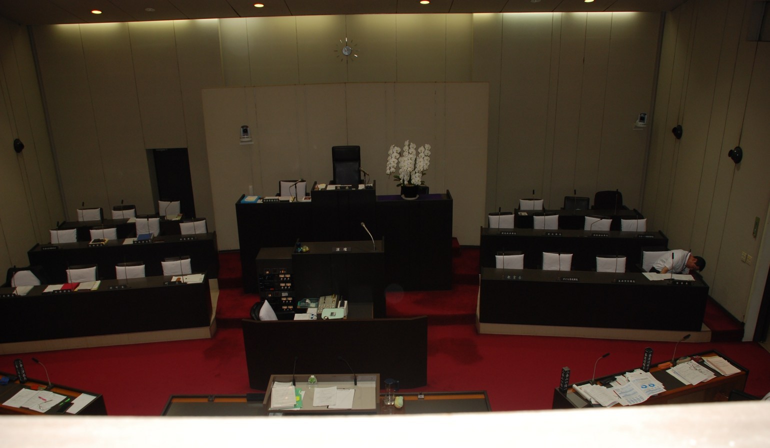 大磯議会は写真のように傍聴席が2階席なので行政側、議員席と上から見下ろせます。2階はさらに左右の横にも傍聴席があるので行政側、議員席とも真横からや少し前側からも様子が見られます。