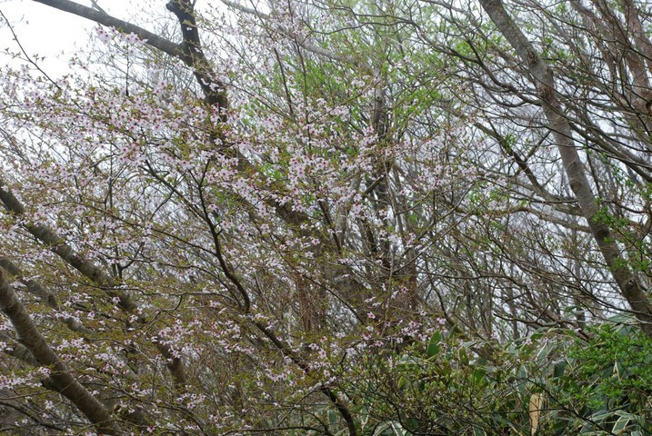 名残りの山桜、新緑の美しい箱根路でしたが金時山は霧の中、富士山は見えませんでした。
