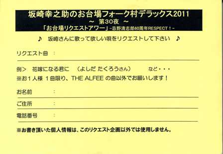 坂崎幸之助の お台場フォーク村 デラックス 第30夜に参加してきました。