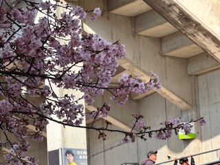 スタジアム到着すると、、、なんと!入り口付近にある河津桜が