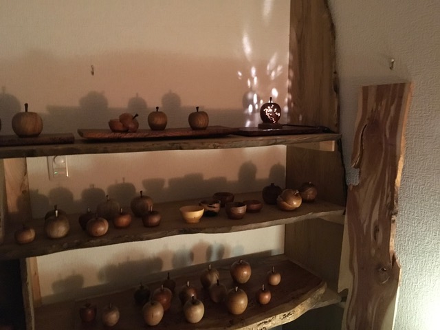 ヤドリギの根は樹木を貫通はしていないので 光が見えるように ヤドリギの根を貫通させる様なしごともあったらしい なんともいえない趣のあるらんぷだ 同じく横川さんがつくった、 瓢箪スピーカーで 秋の虫の音などながして・・・・ それは それは ひとつづつ 味わい深い作品です