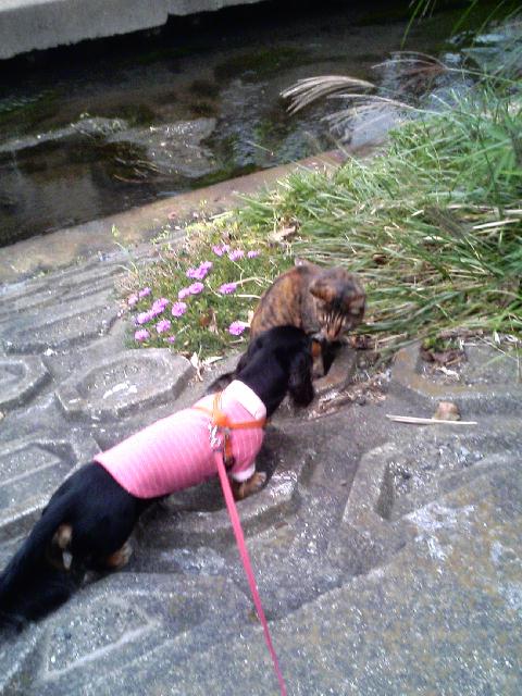 初めまして〜とごあいさつしていたらにゃんこがついて来た。