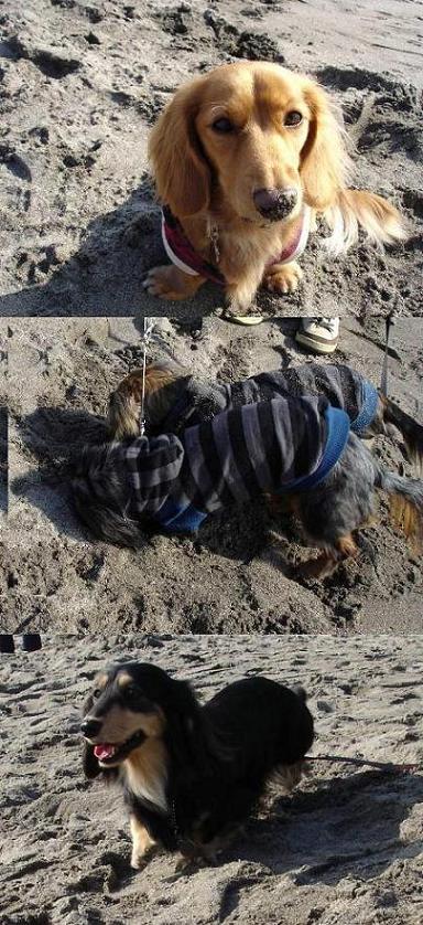 ひかりが穴を掘ると、隣でまりんが砂にゴロゴロ・・・なんなんでしょうか、この姉妹は??