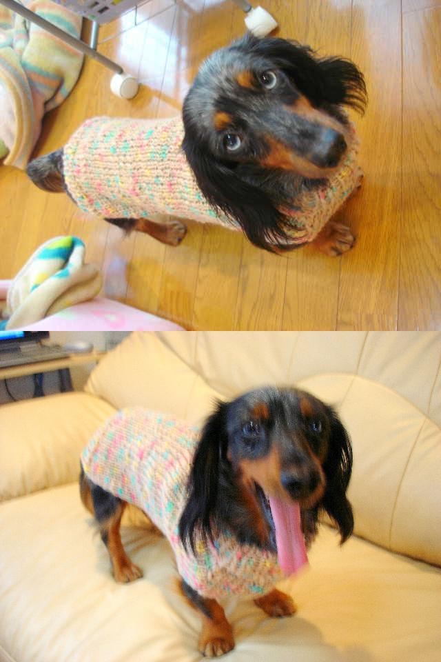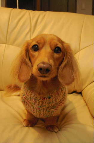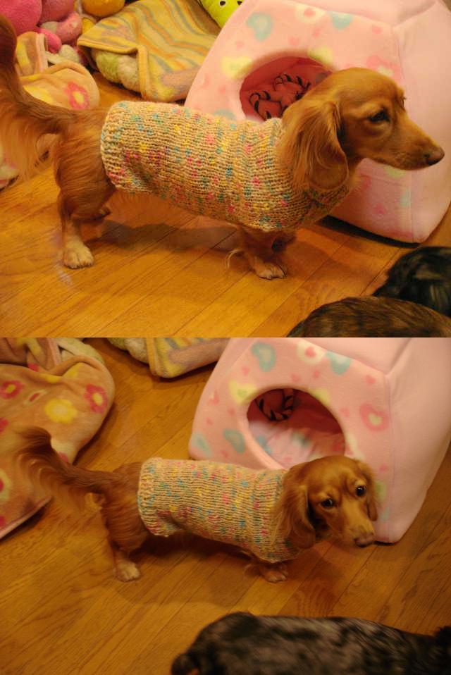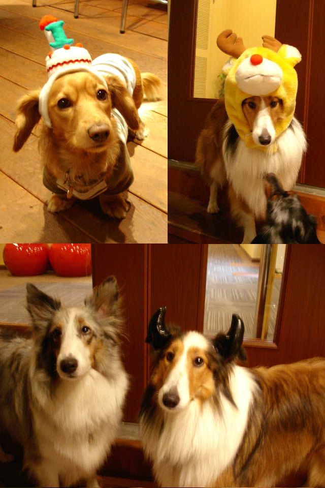 そこにはワン用のかぶりものや洋服が置いてあり、自由に着用できるとのこと。で、早速着せ替えさせました。