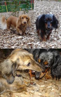 ひかりとまりん、お気に入りの木の枝を見つけ奪い合いながら暴走!