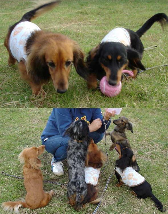 にお散歩、途中お友達に会って一緒に遊び、帰ってきて3ワンにおやつをあげて