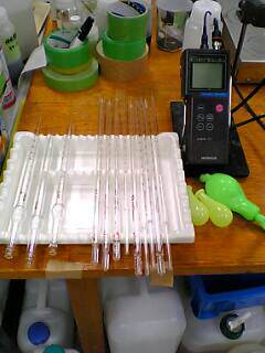 で、私が普段使っている試薬や器具類たちを撮ってみました。