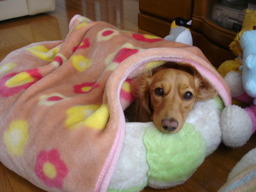 ひかりとまりんが家の中で大運動会をしていても、自分のベッドに潜り込んでウトウト。