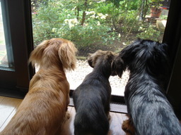 庭で遊ぶこともできない3ワン達。