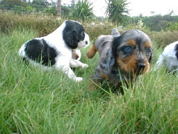 で、無事(?)に旦那を説得して飼う事に。 ブリーダーさんに3匹の中で1番ハイテンションな子を希望しますと伝えたところ、選ばれてやってきたのがまりんでした。 「この子はラテンの血が流れてます(笑)」 とブリーダーさんが言うように、とっても元気で毎日毎日ひかりと爆走中です。
