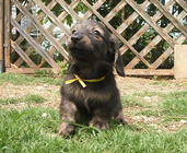 はなもひかりも大きくなって落ち着いてきたある日、 じゃあ、里帰りがてら遊びに行く?!ってなわけで、沖縄に家族旅行に行きました(もちろん、はな&ひかりも一緒に!) ブリーダーさんがドッグカフェを経営していた(今はもうないんですが)ので、ドッグカフェへお邪魔することに。 そこで出会った看板犬「ウォンパー」 とってもフレンドリーでやさしくてカッコよくって。 でも、これって何てカラー?見たことも無いカラーにブリーダーさんが「クリームブリンドルだよ」と教えてくれました。 クリームブリンドル・・・・なかなかいないカラーです。 ペットショップでも滅多にお目にかかれないのではないでしょうか? この時、私の中では「3匹目はクリームブリンドルだわっ」と心に決めました。
