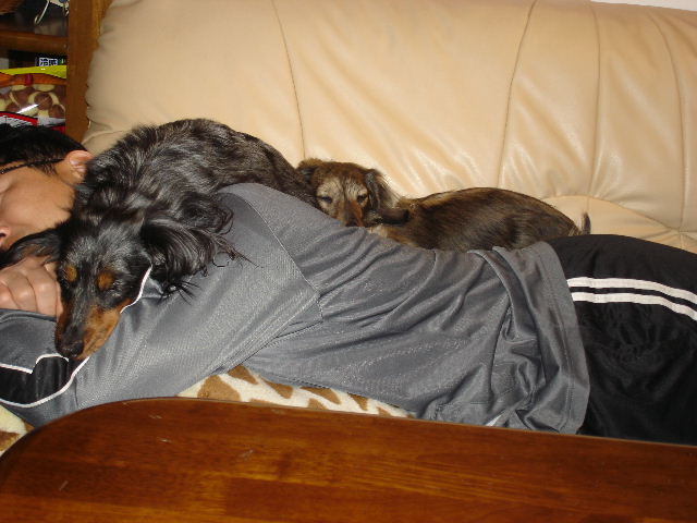 旦那の背中と肩の上で気持ち良さそうに寝ている