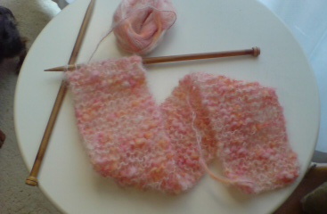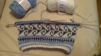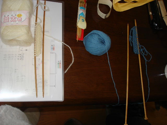 頑張ってウッズちゃんのセーター作りましょうね〜。