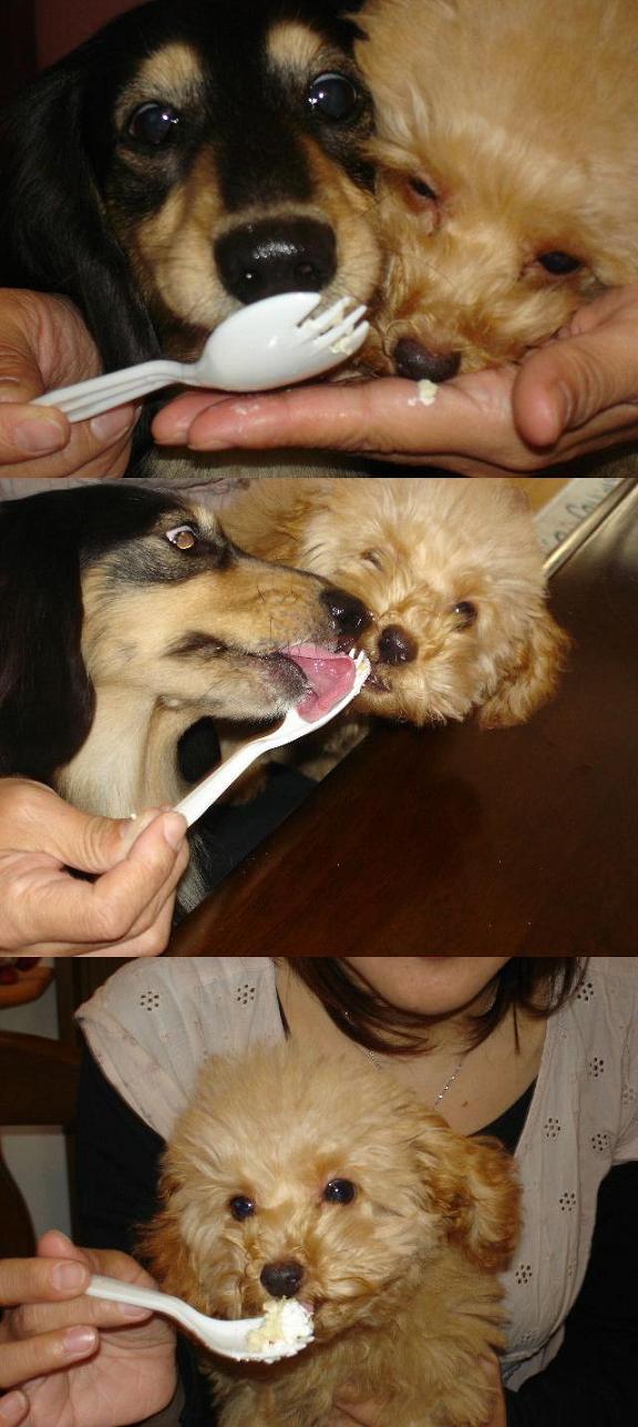 お店からのサービスでワンちゃん用のお水にワンちゃん用のクッキーをいただきました。
