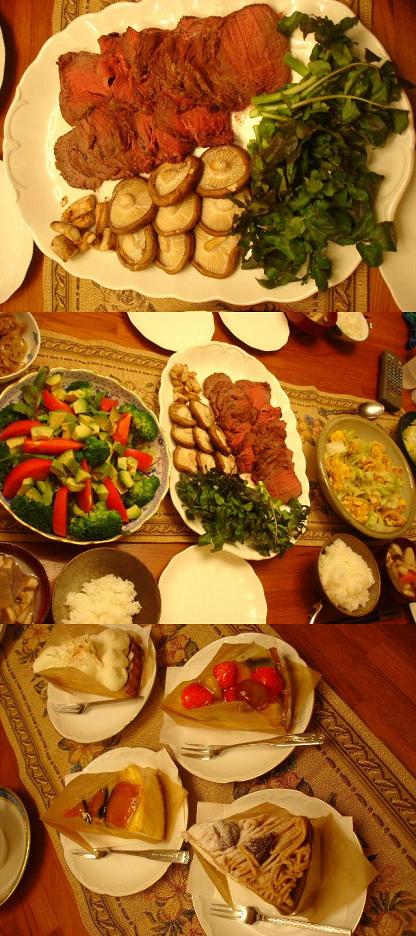 ローストビーフや麩チャンプル、アボガドとトマトの野菜サラダにほうれん草の胡麻和え、レンコンの炒め物などなど・・・超美味しくってついつい食べまくっちゃいました。(体重1kg増です。)