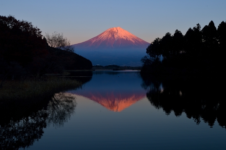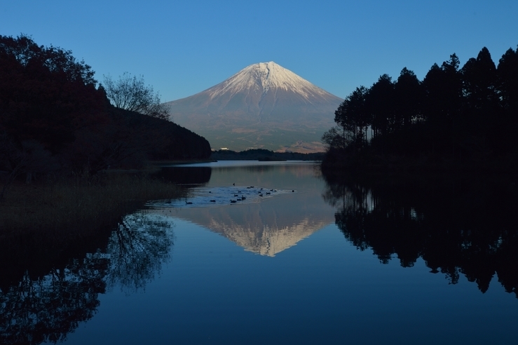 本栖湖では日の出待ちの車が何台か停まっていました。