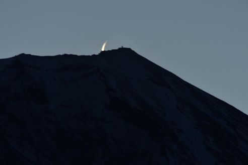パールを撮り終えて人穴からダイヤを狙ってみました。 ポイント行くとパールのところにいたグループがすでに来ていました。 とりあえず場所確保しました。 GPSで場所確認するとポイントはもっと右のほうに出ていました。 20mほど移動して再セットしてそのときを待ちました。 ところが、最近登りのダイヤで位置が狂っていたのがここでも発祥してしまいました。 どうしたカシミールです。 標準レンズではずれは分かりにくいのですが、弩アップの超望遠では一目瞭然です。 当分登りのピンポイント狙いはあきらめて中央狙いに徹しようかと思います。 パールと下りのダイヤはほぼ合っているのにどういう下弦なのでしょうか? でも綺麗に撮れたのでまあいいとしましょう。 どうでもいいことですが、帰りに足柄峠に寄ろうとして近くまで行ったら足柄古道という表示が出ていたので、時間がたっぷりあったのでそこを経由しようと走り始めました。 最初は舗装道路だったのですが、直ぐに未舗装になりました。 今回の春の嵐で荒らされて滅茶苦茶な状況でした。 あと少しで舗装道路に出るところまで来たらバイクがストライキを起して走行不能になってしまいました。 仕方なくレッカーを呼んでもらい御殿場から電車で帰宅しました。 三脚3台カメラ3台交換レンズを持つと30kg以上になるでしょう。 家に着いたらふらふら状態でした。 一休みして葉山の森戸海岸にダイヤを撮りに行きます。 続きは後ほど |