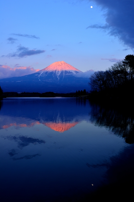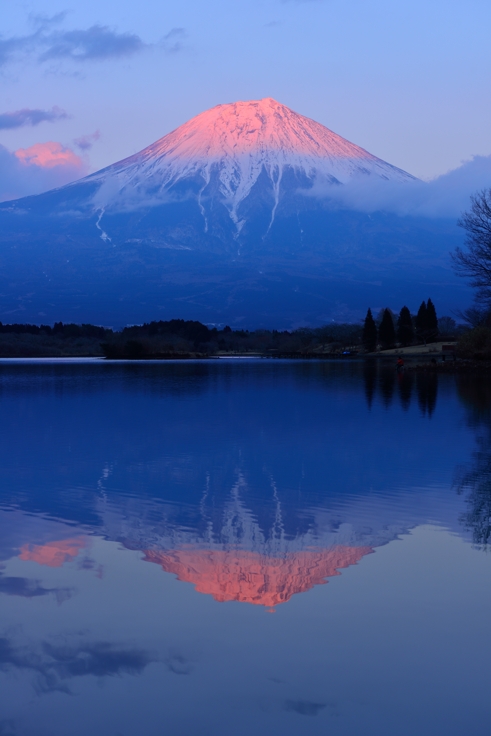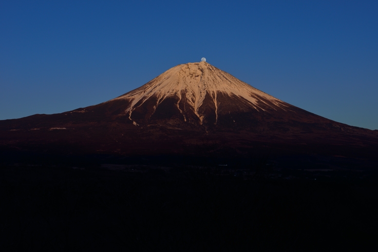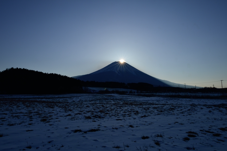 今回のメインイベントパール富士に挑戦です。 高梨牧場かここか迷ったのですが安全パイを引くことにしました。 ダイヤに行くときに少し下見をして帰りに再度調査をすることにしました。 芙蓉という食堂があったので開いていたのでご主人に撮影の許可を頂きました。 周りをいろいろ巡ってジャストポイントを決めました。 一旦田貫湖に戻って腹ごしらえをし、戻りました。 芙蓉の駐車場でもいいのですが少し歩かなければならないので、道路際の駐車帯に停めることにしました。 場所確保のため三脚を立てて車で時間つぶしをしていました。 昼になったので、芙蓉に昼食を食べに行って戻ると立てておいた三脚が見当たりません。 その間40分です。 道路からは見えないところなので、写真を撮りに来た人が盗んで行ったに違いありません。 車は食堂の駐車場しか停められません。 写真を撮りに来た人意外考えられません。 ここまでカメラマンのモラルが落ちたかと嘆かわしい思いです。 こんな経験初めてです。 そうこうしているうちにおなじみさんが三々五々集まって来ました。 総勢10人あまりが思い思いの場所にカメラを据えてそのときを待ちました。 生憎計算よりやや早くパールが始まったので、紅とのコラボはなりませんでしたが、綺麗な写真が撮れました。 |