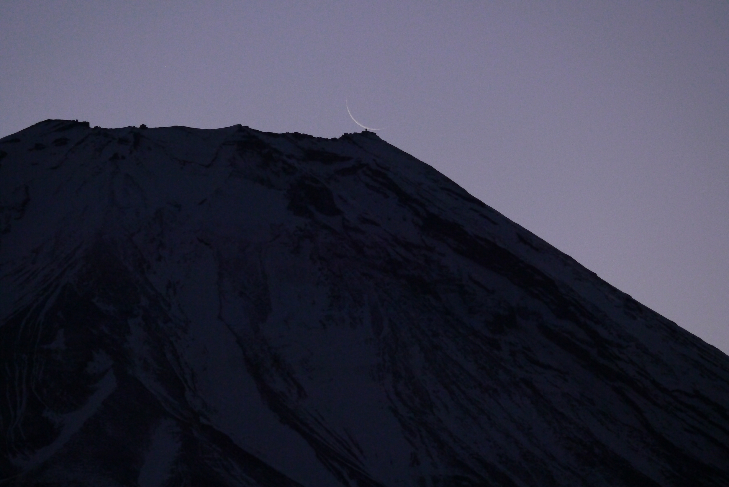 今日は富士ケ嶺のバイオセンターの傍で新月前のパール富士に挑戦しました。