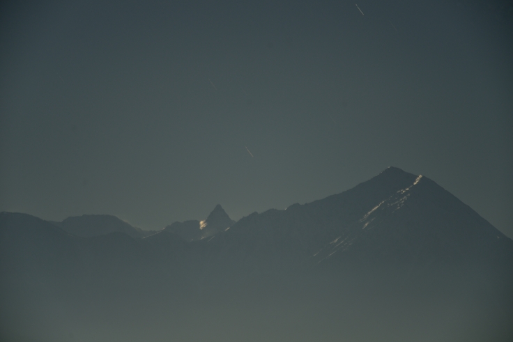 夜中に目を覚ますと、雲は晴れうっすらとアルプスが見えます。
