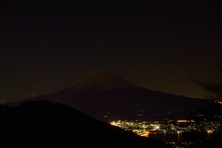 巌道峠のあとあすの竜神池のダイヤまで時間がたっぷりあるのでいろいろなところから富士山と星空のコラボを撮ってみました。