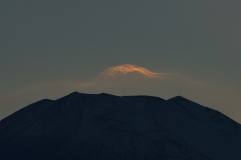 ダイヤのあと、山頂に笠雲の雛が何度も現れましたが大きくなることなく消えていきました。