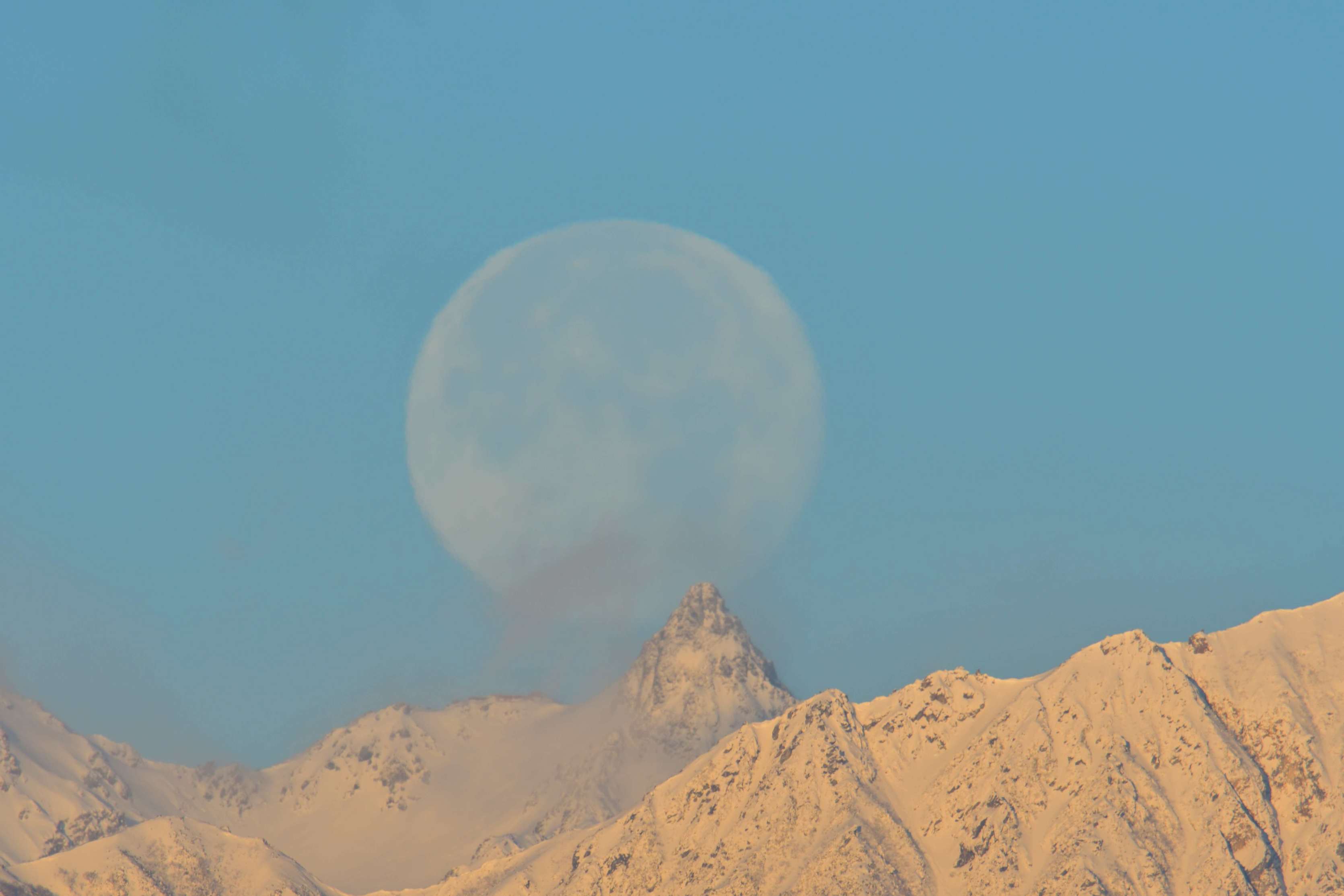 40kmも離れた槍ヶ岳を松本市内や美ヶ原から狙います。