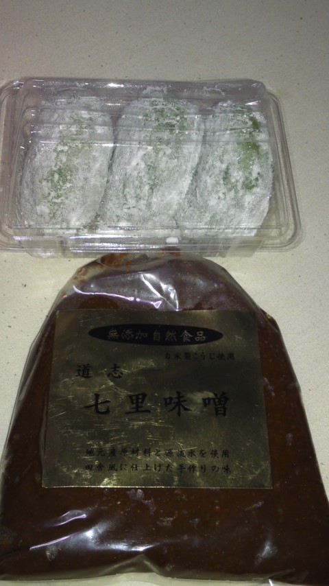 お味噌と草餅購入。 お味噌は道志の「七里味噌」 草餅はちょっと前から食べたくてしょうがなかった。 この草餅は本物手作りだからとても美味。