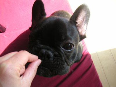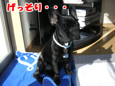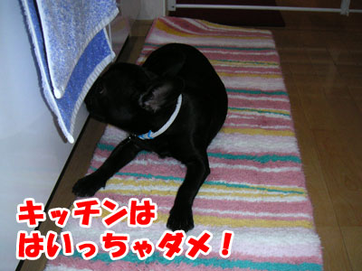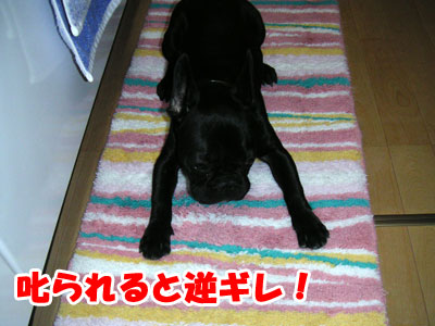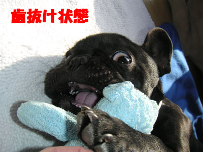 おもちゃを食いちぎり、切れ端をくちゃくちゃしている! 慌てて取り上げようとすると飲み込んでしまうので、 おやつで釣って気をそらせることにする。 おやつを見せながらひゅうを呼ぶと、 急いでこちらに向かいながら「ゴクン」と飲み込んでしまった。 昨日先生から誤飲が原因かもしれないって 言われたばかりなのに・・・