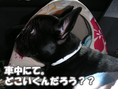 車の中では、落ち着かずキョロキョロ。 胸を触るとドキドキしている。 30分ぐらいすると落ち着いてきたようで、 膝の上で横になる。