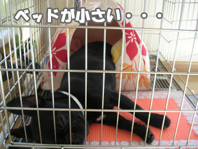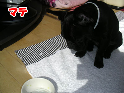 テーブルを1周してかあちゃんに体当たりをしてワン!