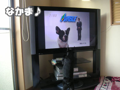 テレビに犬が映ると、近寄って「ワン♪」