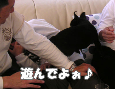 いつもは昼寝をするひゅうだが、とうちゃんの友達に 興奮したひゅうは遊んでくれとせがむ。 小学生のけいごくんがお気に入りのひゅうだが、 けいごくんに嫌われる。 嫌がる彼に「そんなの関係ねぇ!」とばかりに 飛びつき顔を舐めようとする。 即刻ハウス! 仲間に入れてくれとせがむひゅうは、 ずっととうちゃんの腕のなか(腹のうえ)で過ごす。