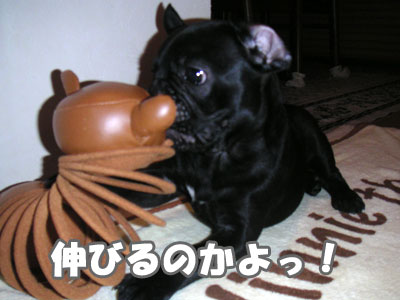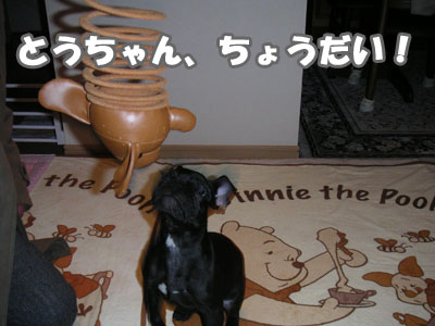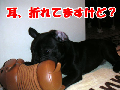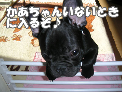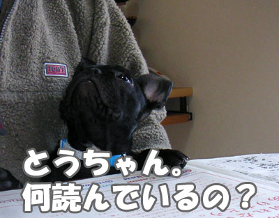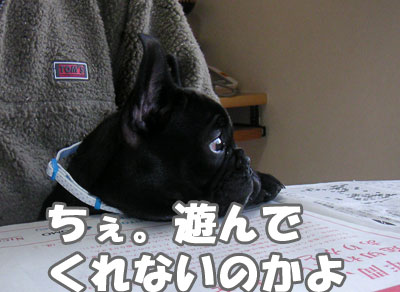 体を拭いてドライヤーをかける。 ドライヤーが怖いらしい。震えながら吠えまくる。 吠えても無駄なことがわかると、 おとなしく顔をかあちゃんの腹に埋めて 耐えることにしたらしい。
