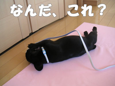 はじめての首輪。気になるようで後ろ足でしきりに掻く。