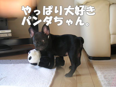怒ってる!かあちゃんの脇を素通りし、パンダちゃんに直行。