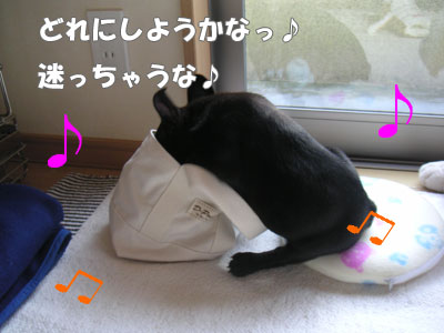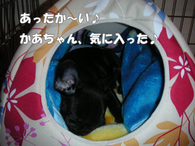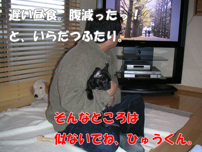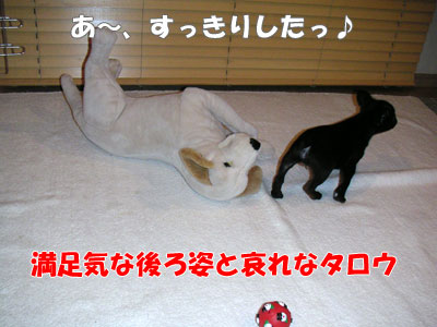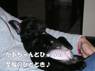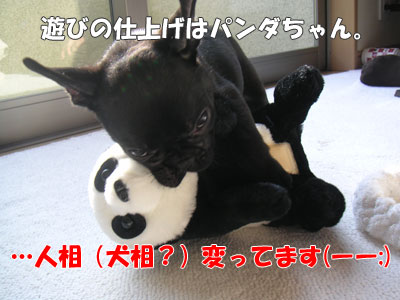 昨日の夜はひゅうの粗相を片づけていると、 自分のおしっこを吸ったトイレットペーパーを咥えて大暴走。 とうちゃんに抑え込まれ、かあちゃんに口の中をこじ開けられ トイレットペーパーを取り上げられたひゅう。 ふたりに叱られたと思ったひゅうは、パンダちゃんに八つ当たり。ガンガン振り回して自分の頭をテーブルにぶつけると、 テーブルの周りを全速力で大暴走。 突然方向転換し、寝ているとうちゃんの顔をめがけて突進。 トイレシートをひっかく、振り回す・・・ いやがらせ??反抗期??でも、最初からだよなぁ。。。 だんだんエスカレートしてくる感じがコワイ。