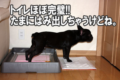 行くけど、前脚だけトイレにかけて後脚はトイレの外で