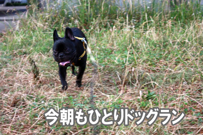 朝散歩から戻ると、近所の空き地で勝手にドッグラン状態。