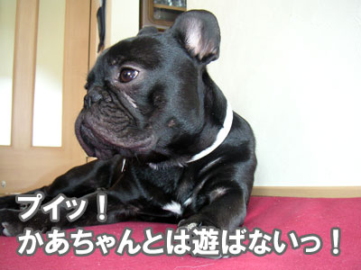 ひゅうはいつもより短い散歩で機嫌悪いし