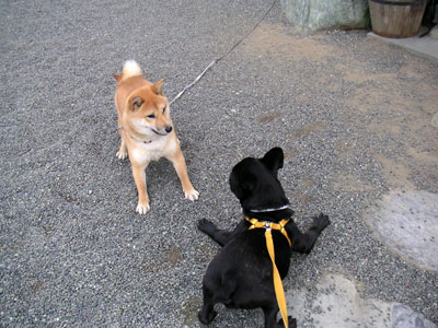 帰りに柴犬マロンちゃんに遊んでもらう。