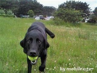 しずくは子供が好きじゃないから 私の影に隠れながら ボール遊び 自分の傍に子供が来ないのがわかれば いつも通り遊ぶけれど 『しずく〜』って呼ばれると 身体は大きいけれど 小さくなったつもりで私の後ろに隠れる