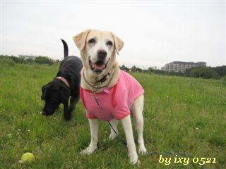 雑草もすごい状態になってきていたから 雨上がりにビショビショになる2匹・・ でも 嬉しそうに走りまくる しずくも楽しそうに元気に走ってた